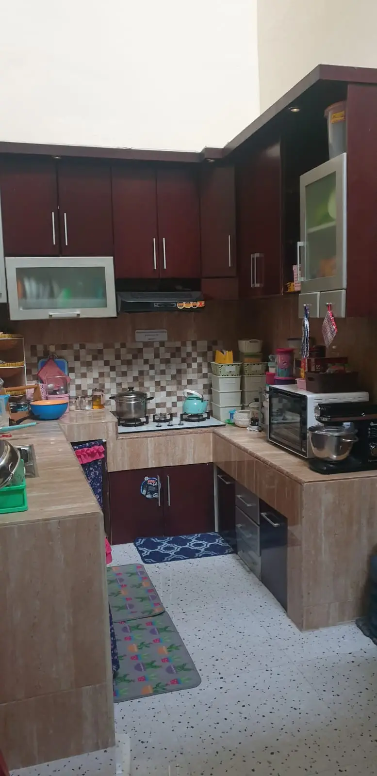 2. Lantai Full Granite grade A ukuram 60×60, lampu kristal ruang tamu & teras lt 1, lampu gantung area dapur & t4 makan dll, lampu2 sudah full LED