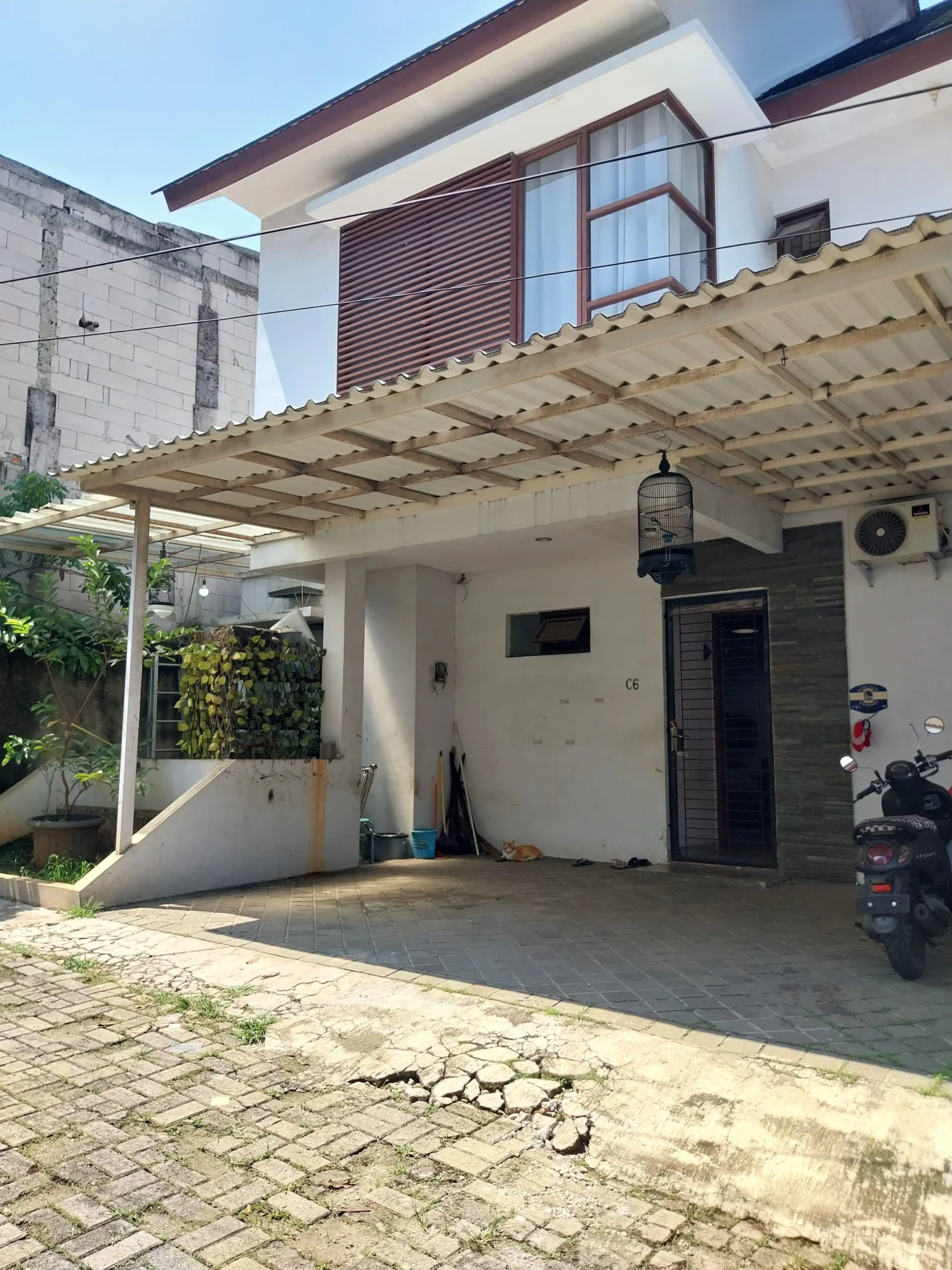 For sale rumah hook di wilayah yang tenang dengan pemandangan permukiman warga. Properti 2 lantai bergaya minimalis ini berada di lingkungan perumahan/komplek.
