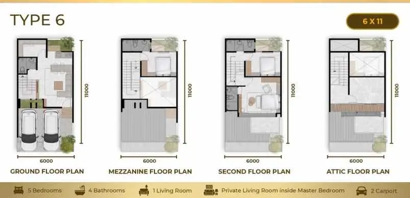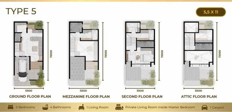 Kamar Tidur : 5