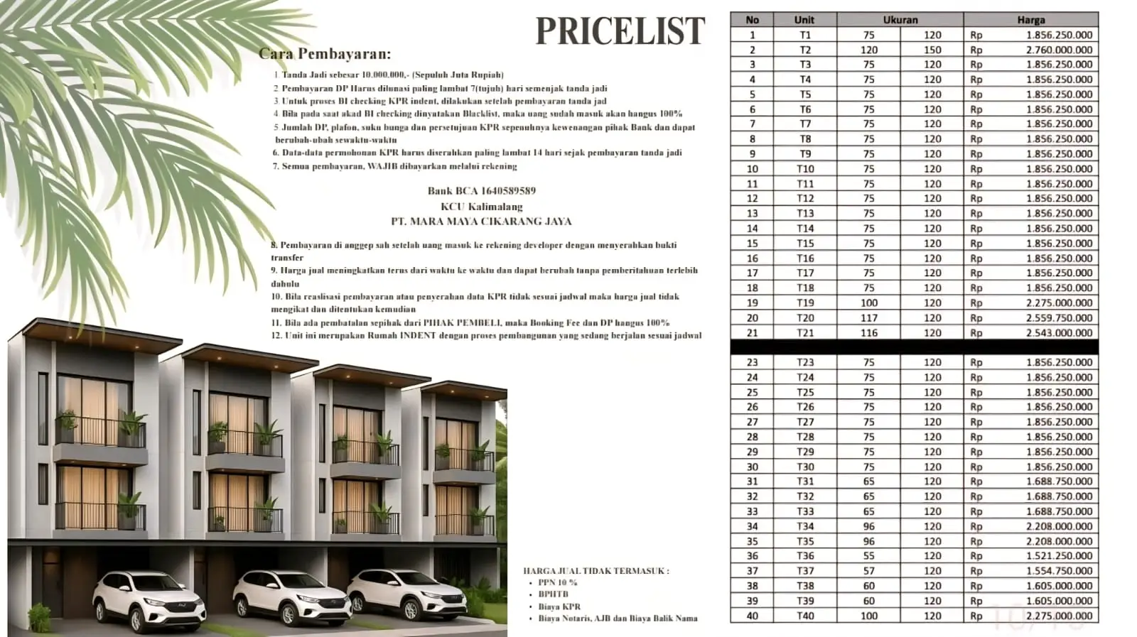 – Pembayaran ( Cash, KPR, Cash bertahap max 2 tahun)